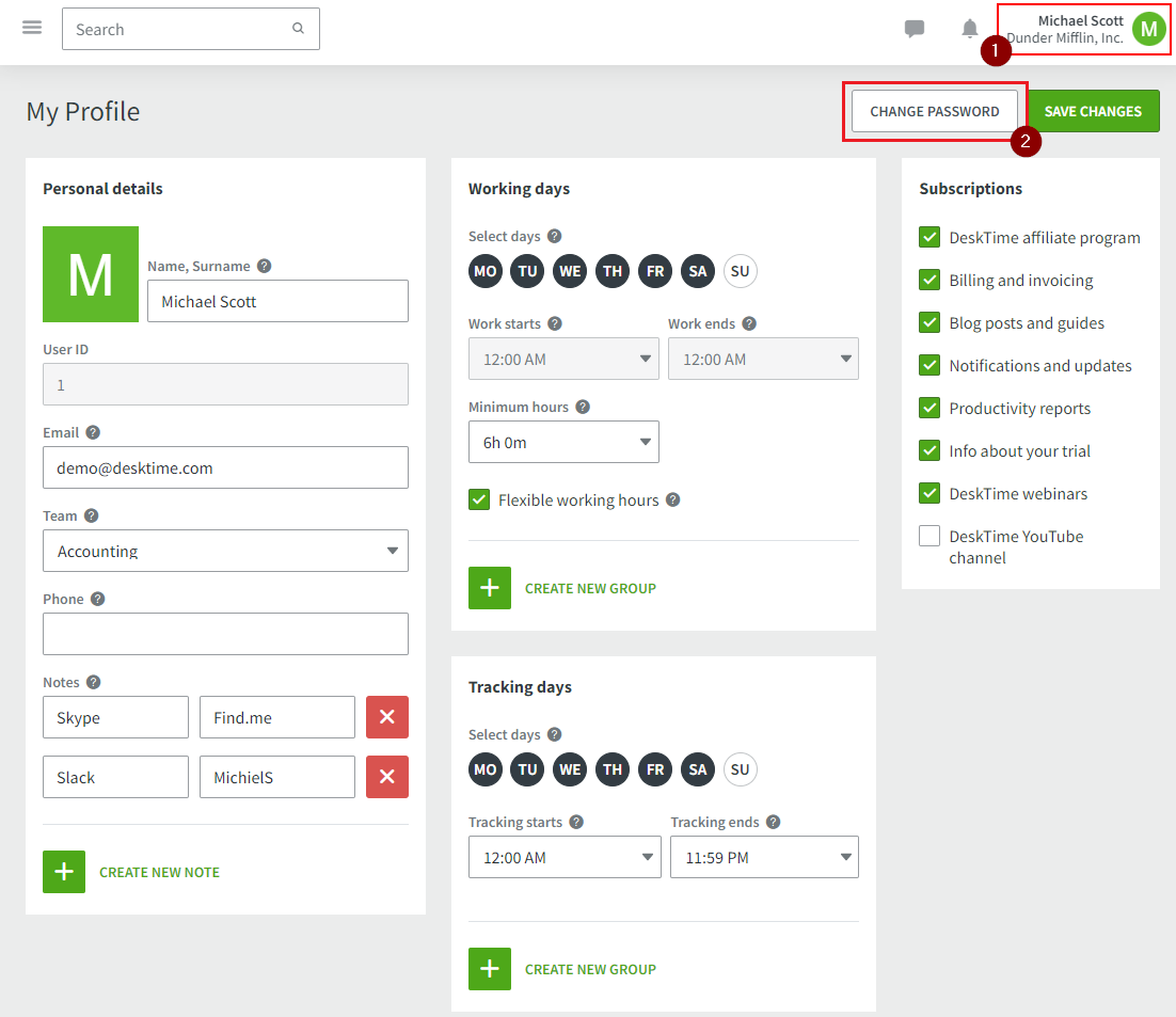 - With the DeskTime application opened, click on the Profile icon at the top right corner of the window.