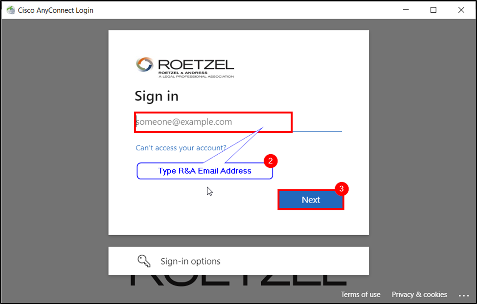 2. A new window will appear. Enter in your R&A Email Address.