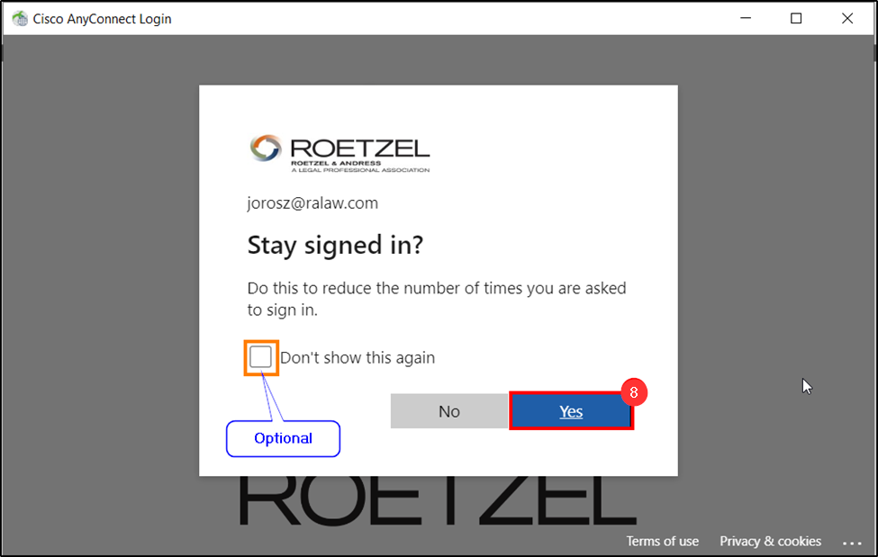 9. The window will disappear and will connect to the VPN.