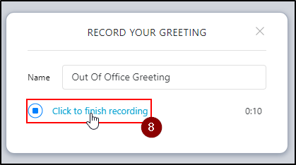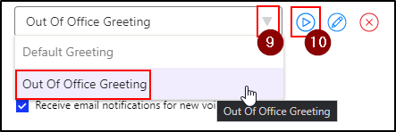 9. To listen to the recording click on the drop-down menu, select a greeting.