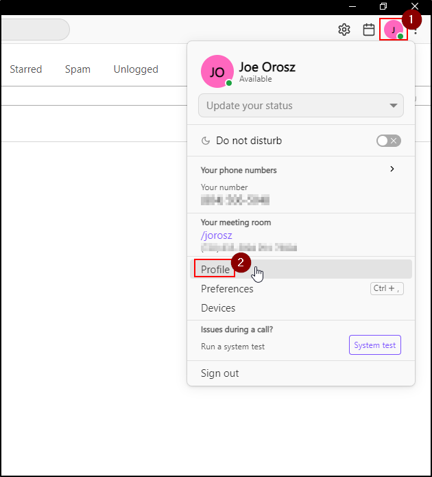 1. Launch the Dialpad app on your computer and click on the Profile Icon on the top right-hand corner.