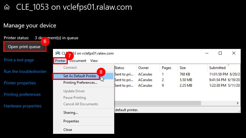 8. Then Click Set As Default Printer .