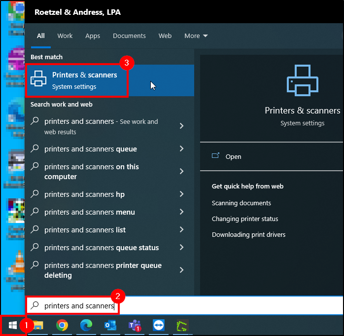 2. Begin typing Printers and Scanners .