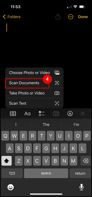 4. Tap Scan Documents.