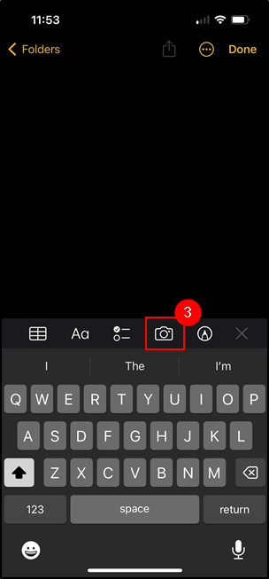 3. While in the note, tap the Camera icon.