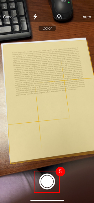 5. In a well lit room, hover over the document you are scanning and it will highlight the document in yellow and tap the button to scan it.