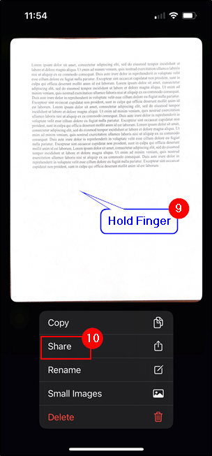 9. To export these documents, hold down a finger on a document.