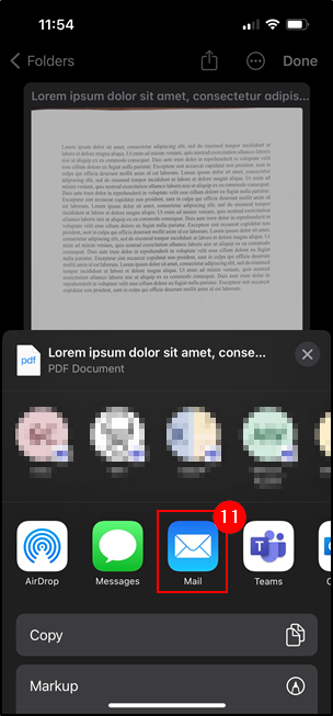 11. If you wish to include these in an email, select the Mail app. It will attach the document as a PDF format.