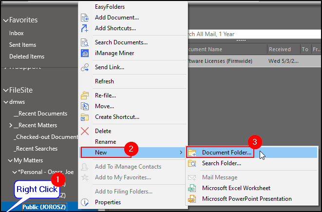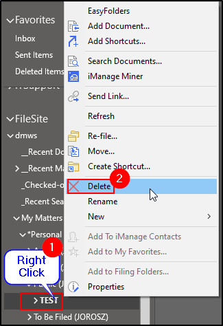 1. While in a Client Matter in Outlook, right click on a matter folder.