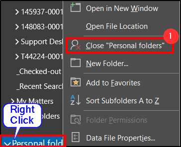 1. When you are done viewing, right click on the Personal Folders section and select Close.