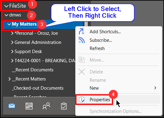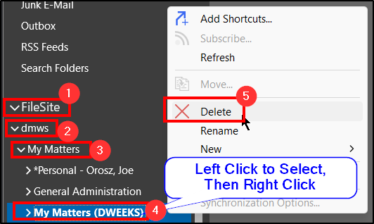 1. Open Outlook and go into the FileSite from the folder pane. Expand the folder.