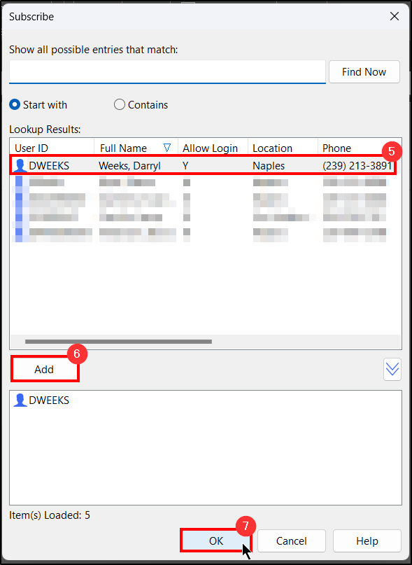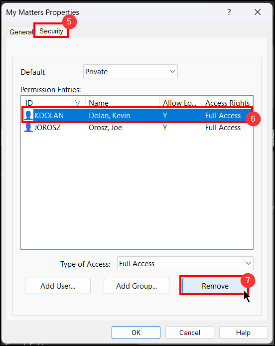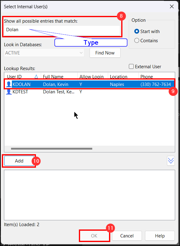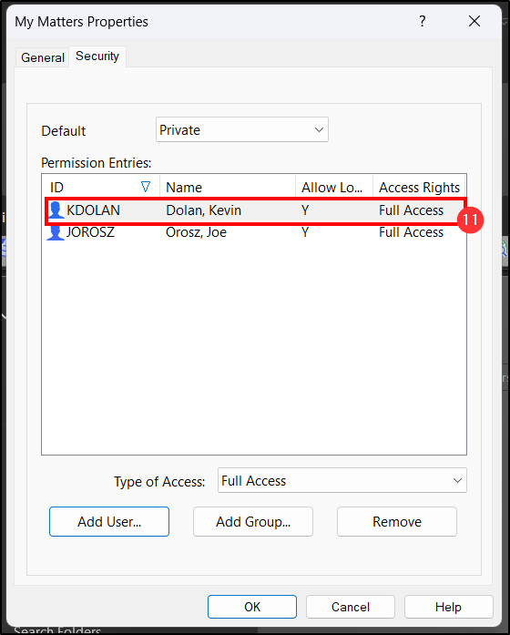 NOTE: If you do not see a name listed you wish to add, please reach out to that user and have them follow an article for Granting & Removing User Access To MyMatters.