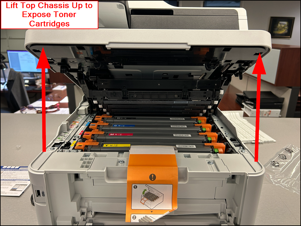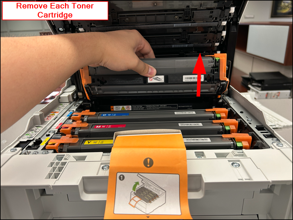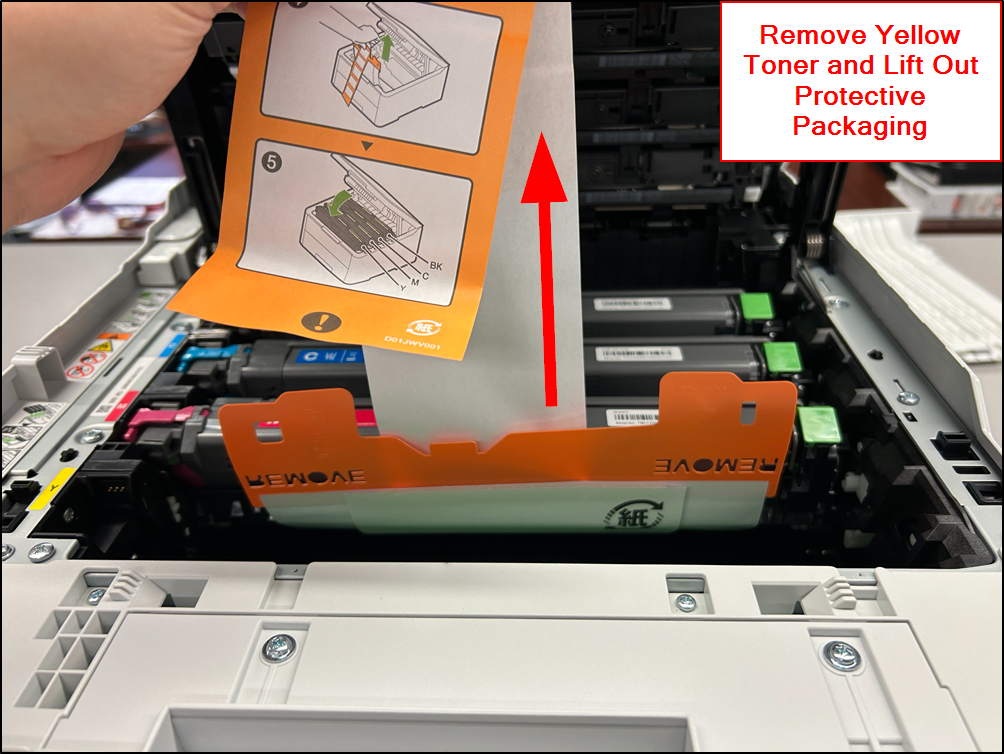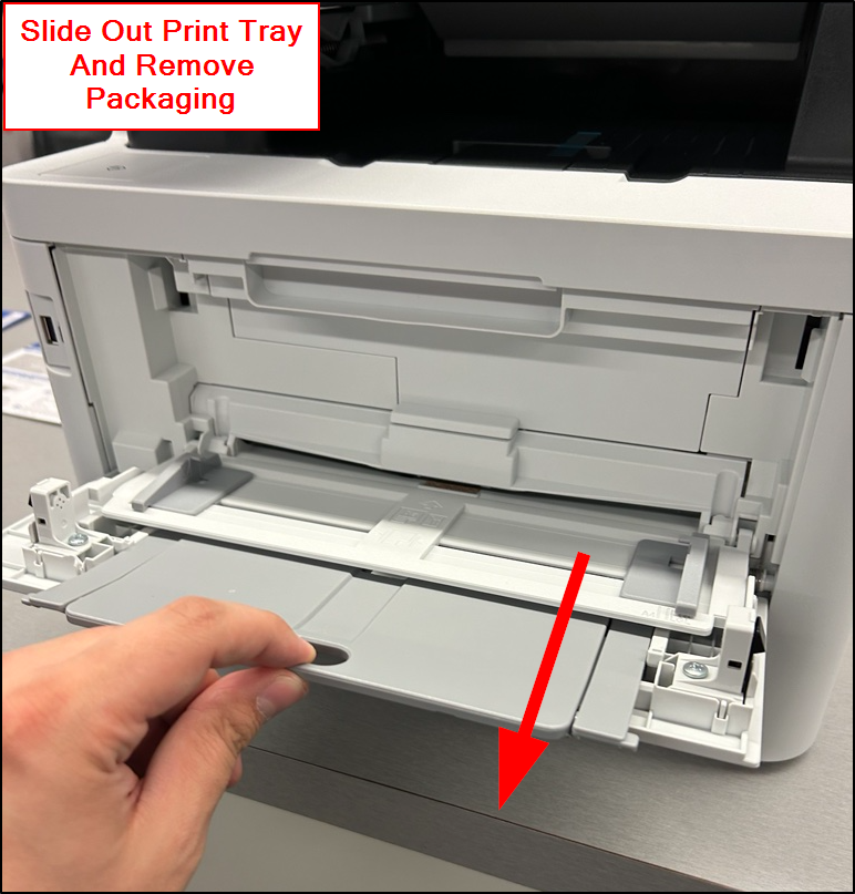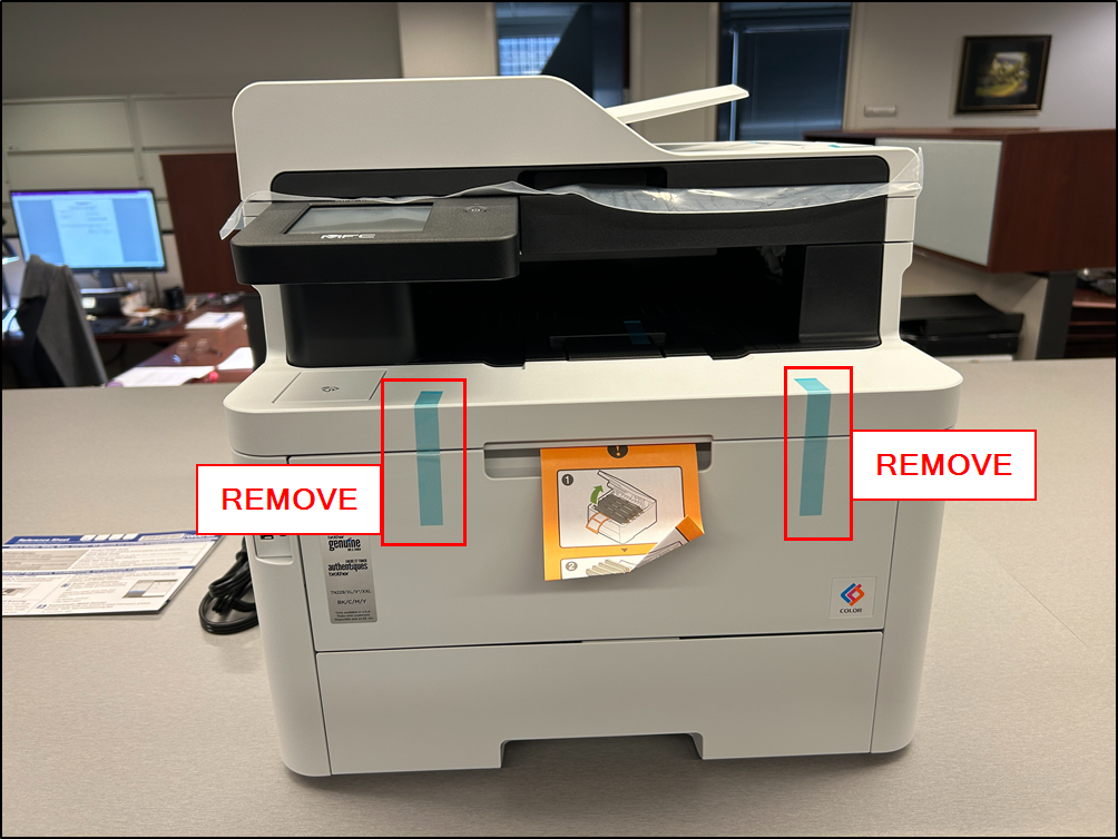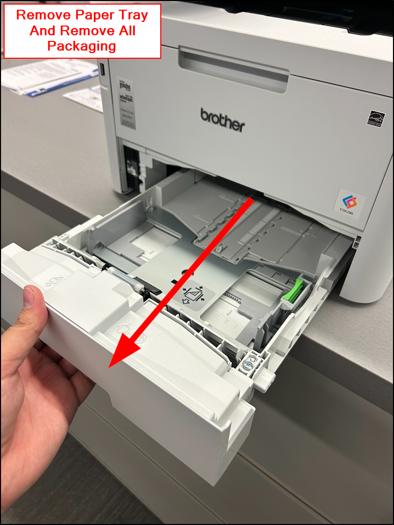 Please review the quick start guide provided with the printer to verify all packaging has been removed before proceeding.