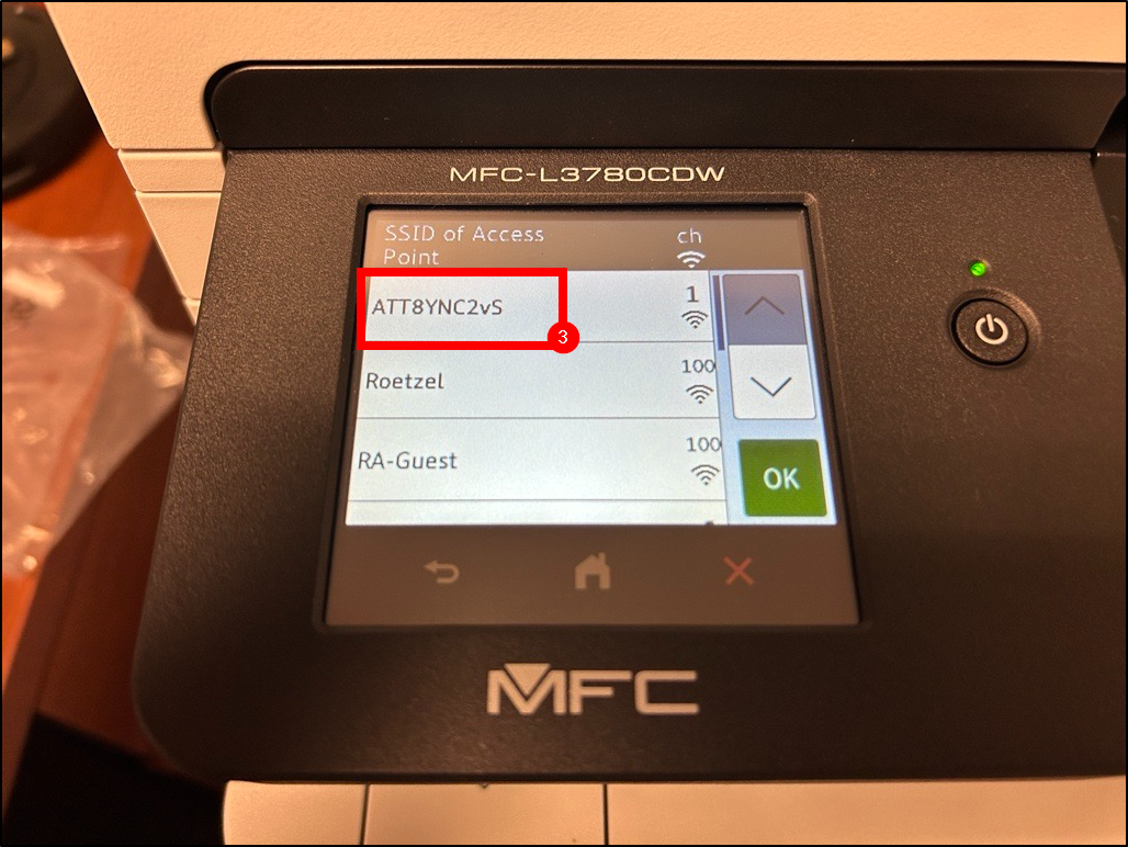 3. Use the Arrow Buttons to scroll up and down to select your home Wi-Fi.