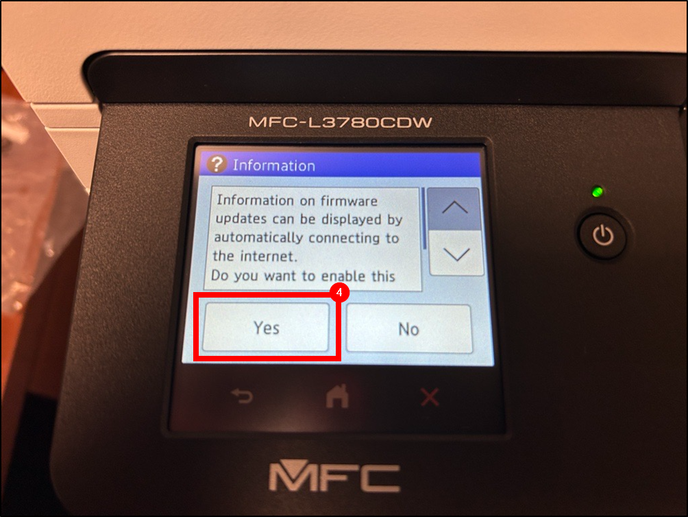 4. A message will appear asking to allow firmware updates. Press Yes.