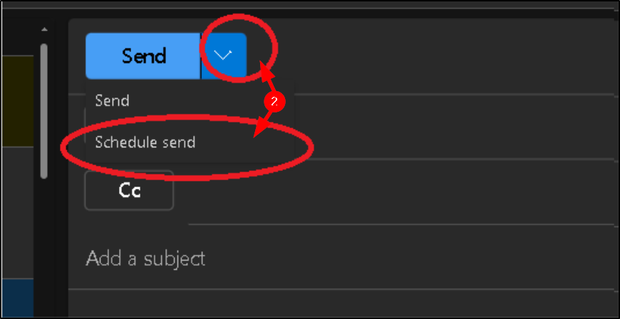2. Before sending, click the arrow next to the Send button and choose Schedule Send.