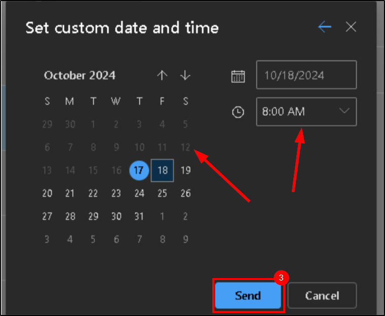 *Choosing Send is not sending the email at that time, it is sent to your Drafts folder and will remain their until the time that it is set to.