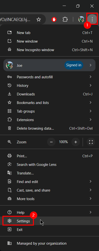 1. Click the ... on the top right of the Google Chrome browser window.