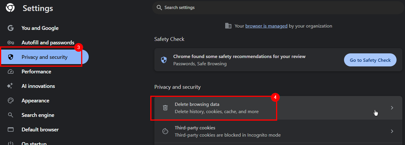 4. Choose Delete Browsing Data.