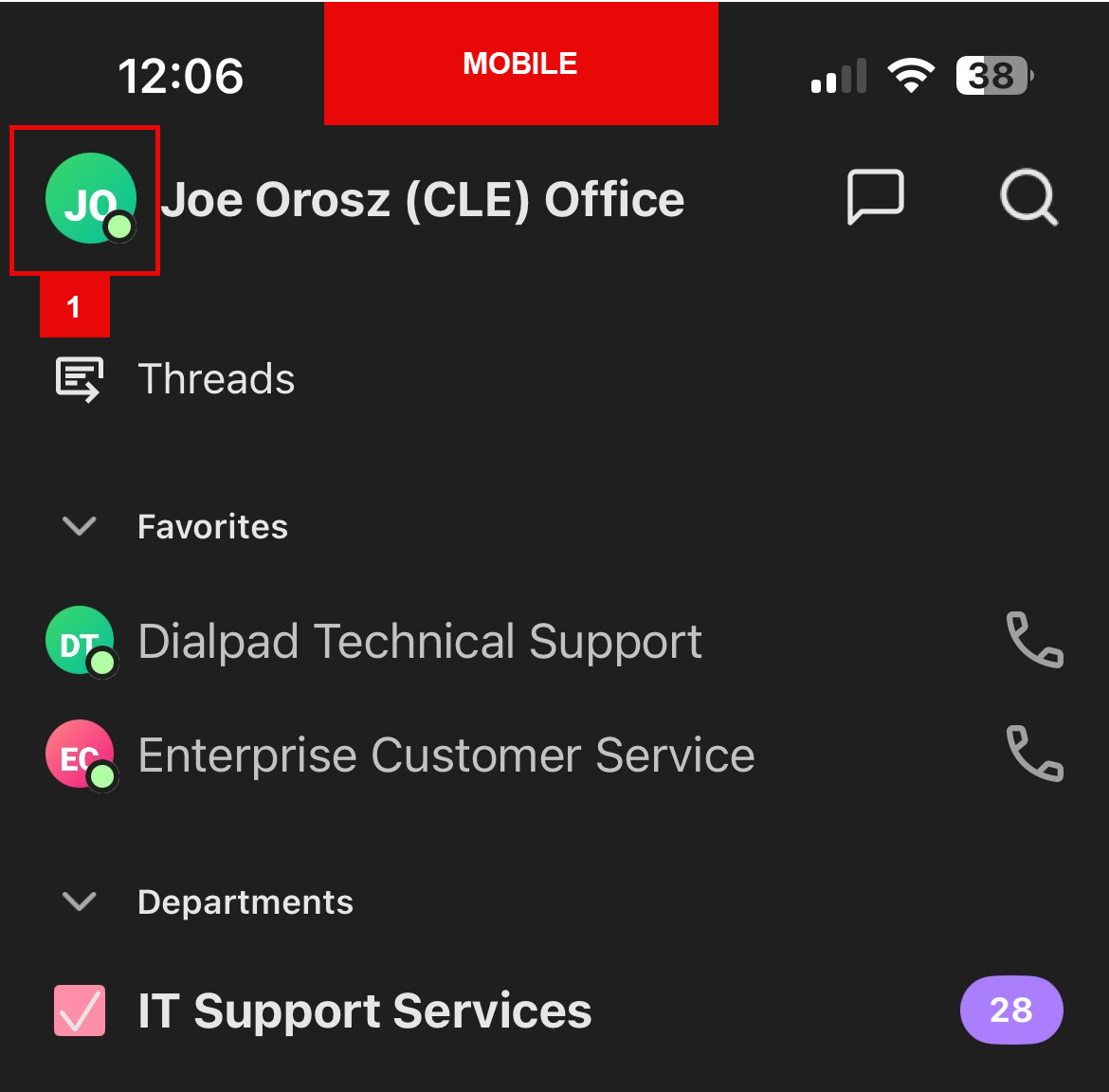 - On the Dialpad app, click on the profile icon on top left.