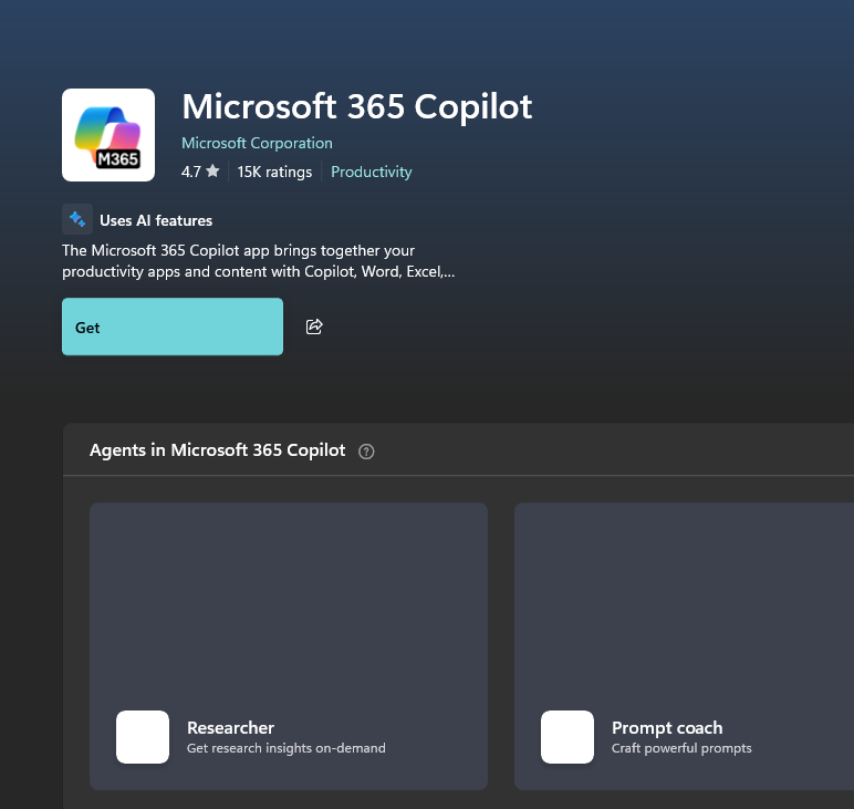 After the update completed, I selected Get. It went through the process and then displayed Get again, but I was I was able to open the app.